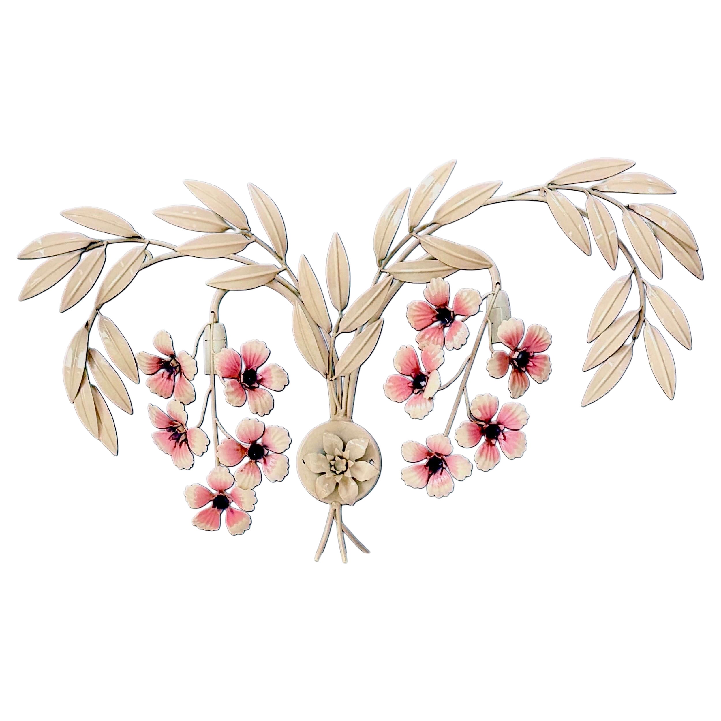 Lampadario floreale spagnolo Glamour Tole dipinto a mano Metallo , Spagna anni '70