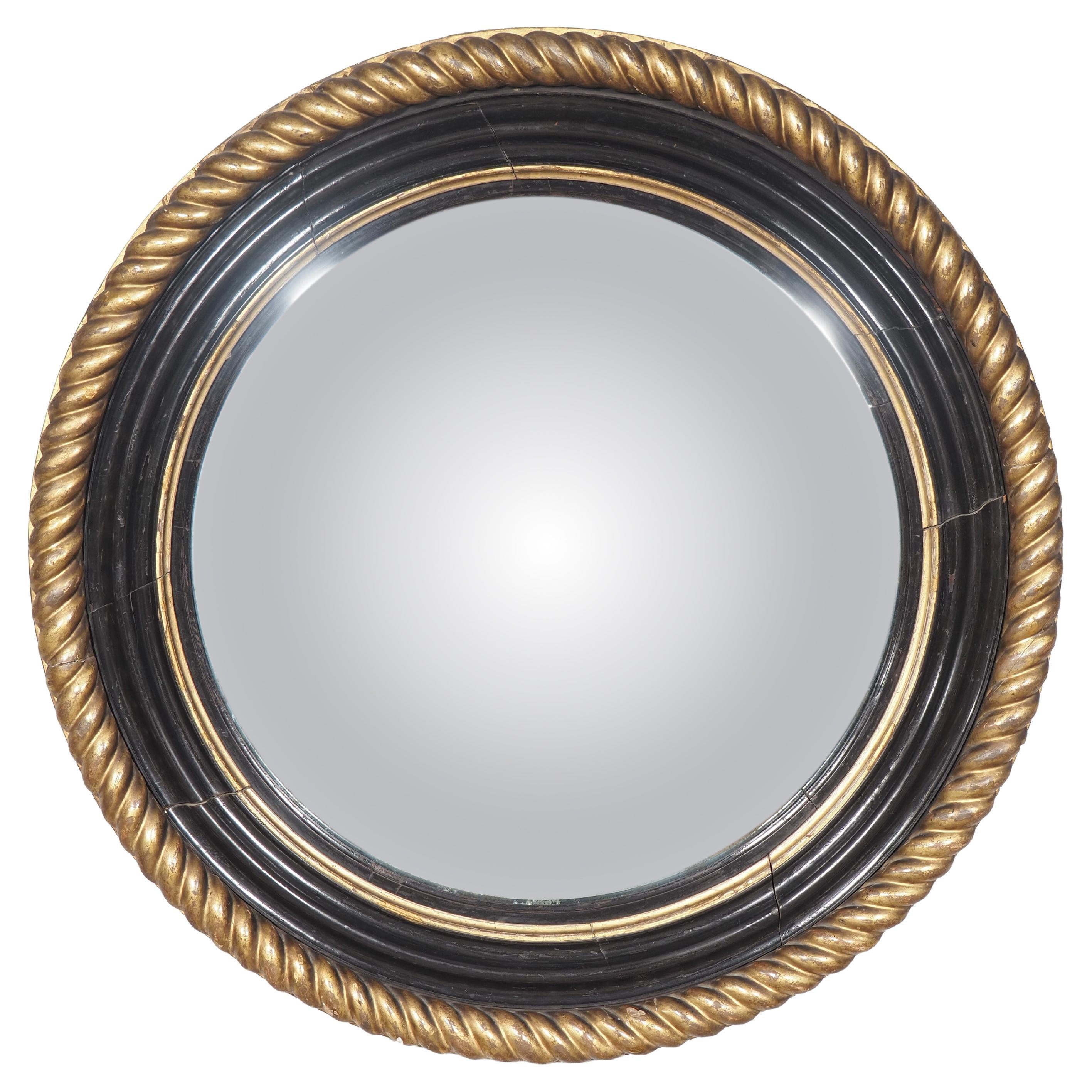 Lo specchio ovale in stile Regency irlandese è caratterizzato da una raffinata cornice in Wood Wood ebanizzato, impreziosita dalla doratura Parcel e da piccoli cabochon in vetro che ...