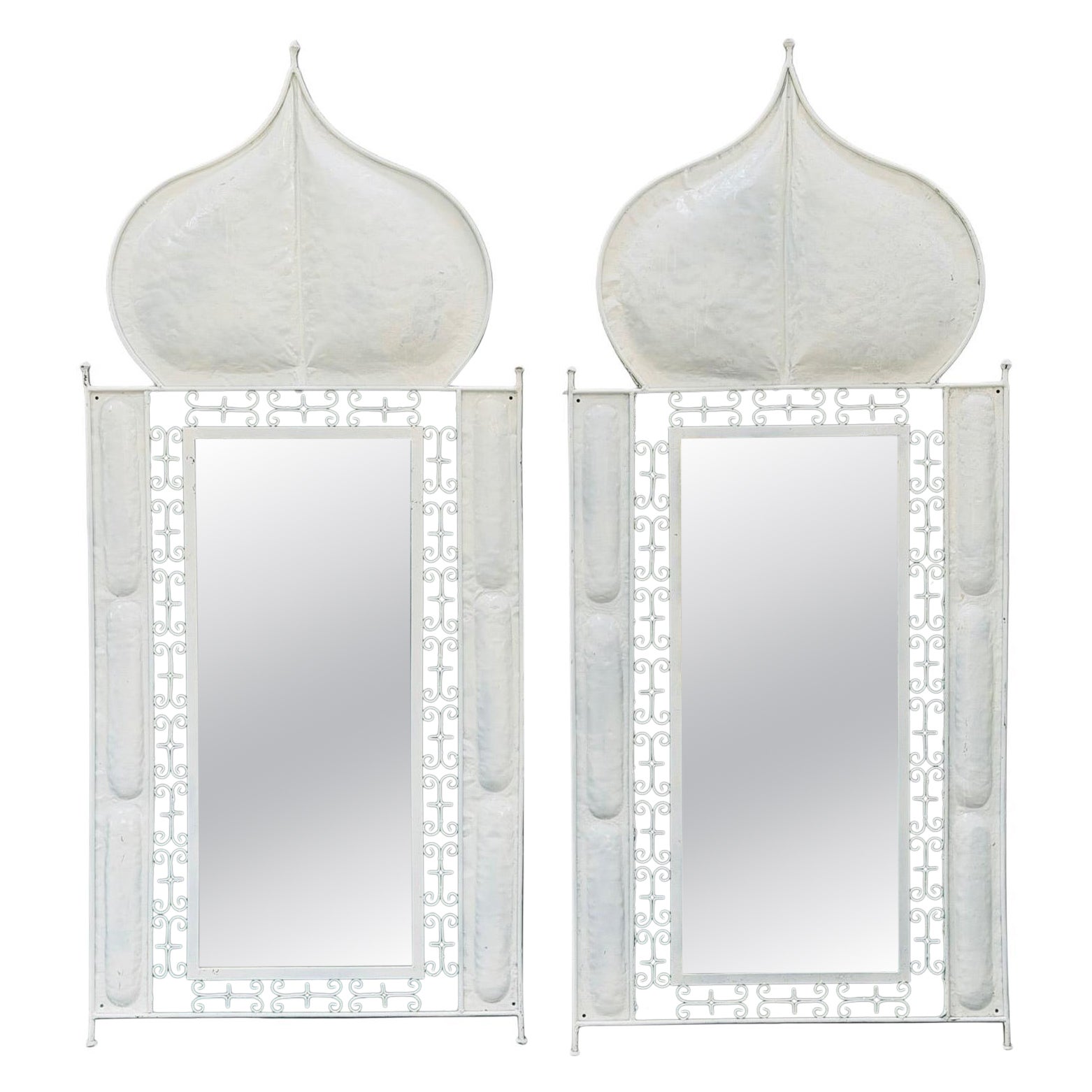 Coppia di specchi da parete in metallo bianco di epoca moresca