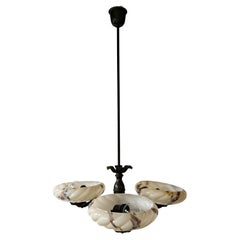 Lampada a sospensione Adolf Loos per VeArt in vetro opalino e ottone dorato Art Deco, circa 1970