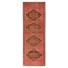 Rosa, Sovratinto, Hamadan persiano vintage con medaglioni geometrici, consumato e rovinato, Zero pile, pulito, annodato a mano, 100% lana, Runner, Tappeto orientale