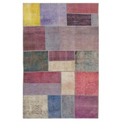 5'x7'1" Colorful Polonaise Broken Design Tappeto annodato a mano in lana e seta Sari