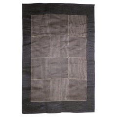 Tappeto astratto postmoderno marocchino con motivo berbero nero e argento beige senza frange
