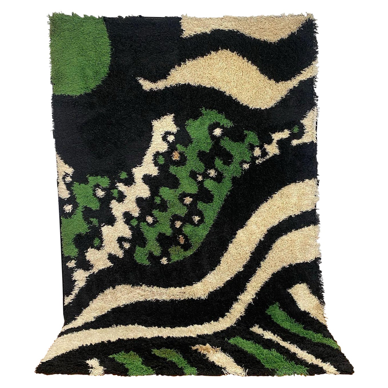 Tappeto originale scandinavo a pelo alto Rya, design Danimarca, anni '70