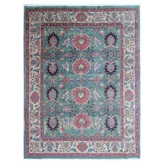 Tappeto Gabbeh moderno 5x5 annodato a mano - Motivo animali tribali e diamanti - Blu cielo