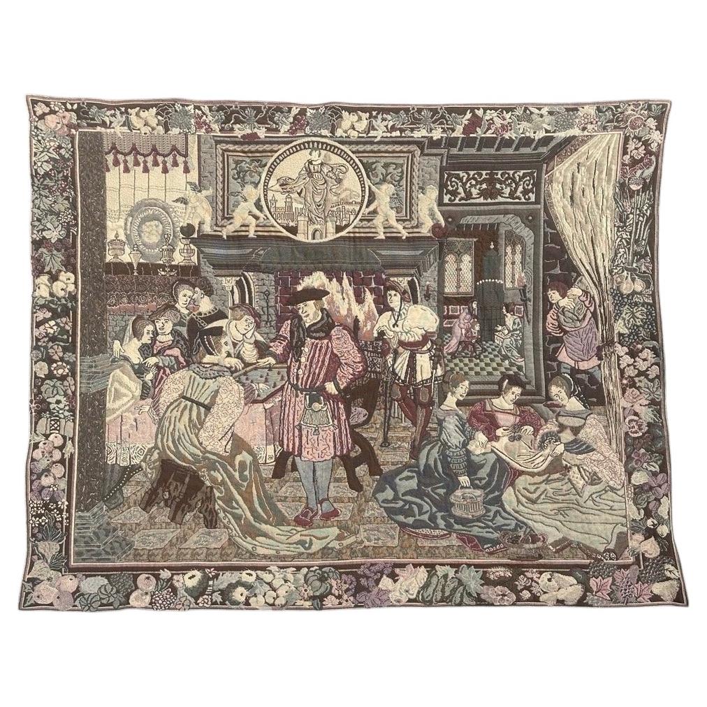 "Squisito arazzo di metà secolo in stile Aubusson con un accattivante disegno medievale. Un magnifico arazzo che raffigura il Romanzo della Rosa, un'opera iconica della letteratura m...