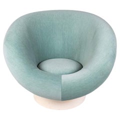 A mano pouf a forma di fungo, rivestito in tessuto misto lana a pois. Il tessuto "Sequoia" è di colore verde oliva e presenta una trama di puntini marrone chiaro. Perfetto per esser...