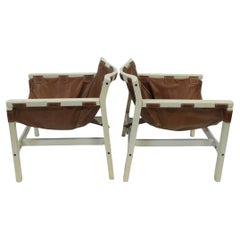 Set di 2 Sedie Safari con fionda in pelle lavorata a mano di Angel I. Pazmino del Medio Secolo