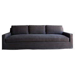 Sedia a bracci inglese in lino rivestita di scivolo su ordinazione con cuscino in piuma d'oca