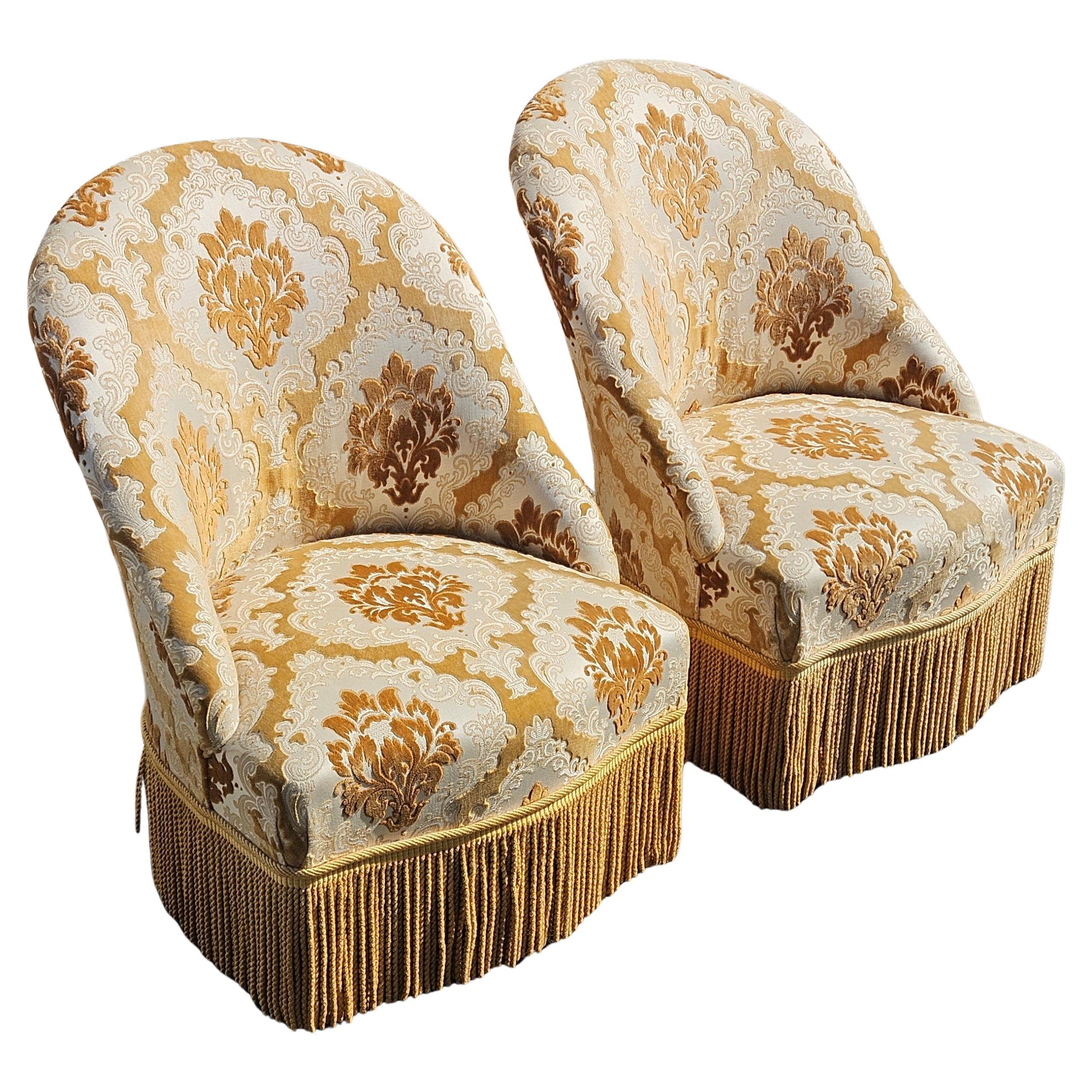 Set di 2 poltrone Crapaud francesi d'epoca-Sedie da salotto-Boudoir anni '50