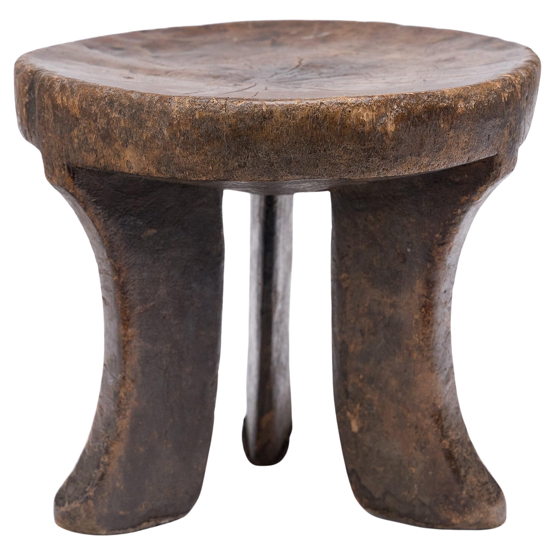 Elegante trio di sgabelli africani vintage, probabilmente etiopi, inizio XX secolo. Elementi di design perfetti per l'estetica rustica e sofisticata attualmente in voga. Buone cond...