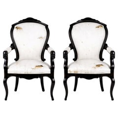 Una raffinata coppia di poltrone da donna e da uomo di campagna del XIX secolo