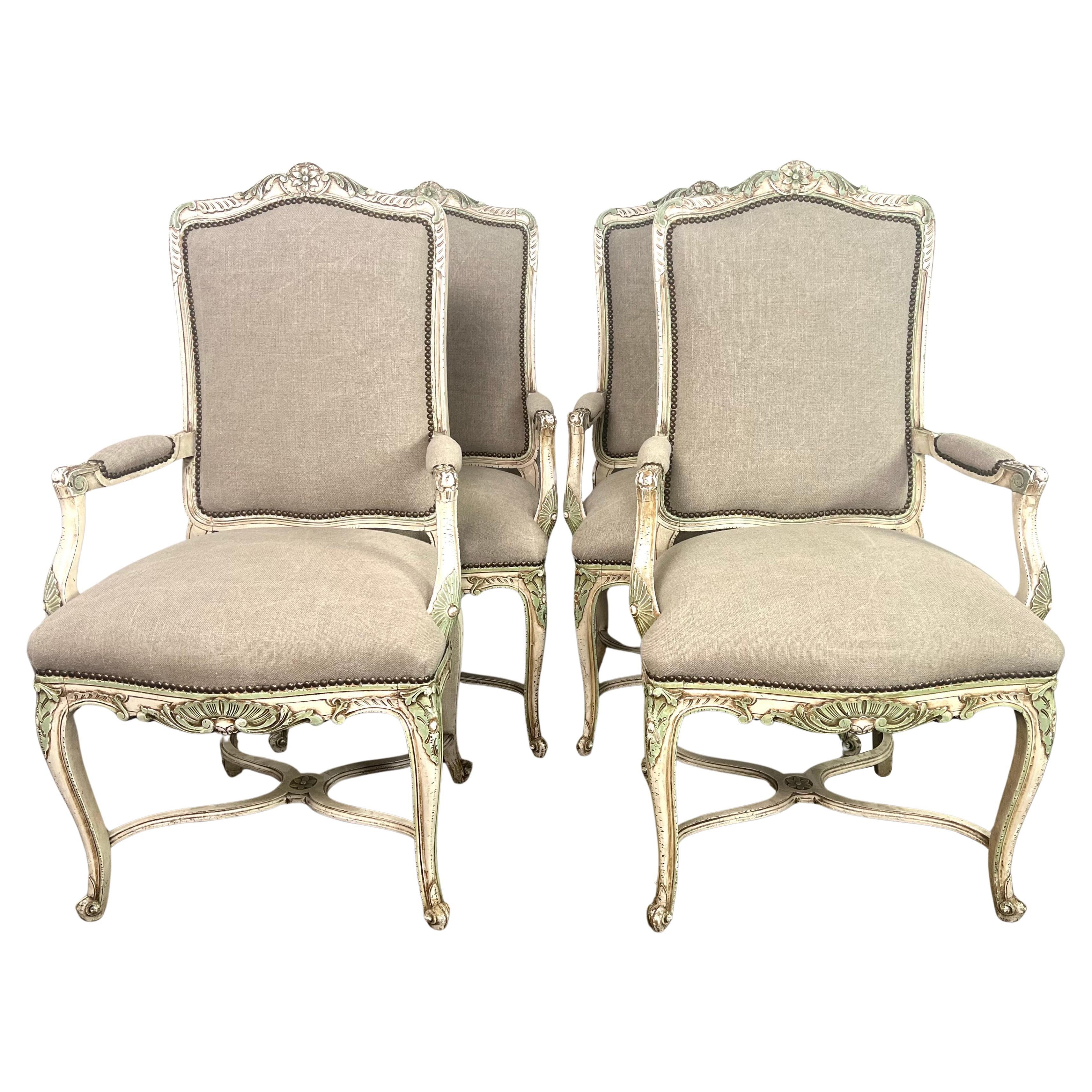 Direttamente dalla Francia, un bellissimo set di 4 sedie da pranzo Antique French dallo stile rinas...