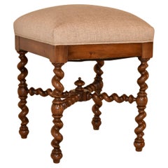 Antique French Louis XV Style Carved Walnut Needlepoint Stool Foot Rest Ottoman (sgabello con poggiapiedi)