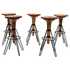 Robusti sgabelli da bar di metà secolo in Wood massiccio