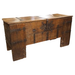 Rara (tardo medievale) cassapanca tedesca in ferro battuto del XVI secolo, o Stollentruhe