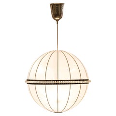Lampada a sospensione francese Art Nouveau in ottone e vetro satinato del 1920