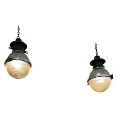 Lampade da parete francesi con ottone e vetro trasparente Holophane