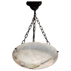 Una sorprendente e generosa lampada a sospensione in alabastro, che misura circa 19,75 pollici di diametro, realizzata durante il periodo Jugendstil europeo. Ricavato da un unico blo...