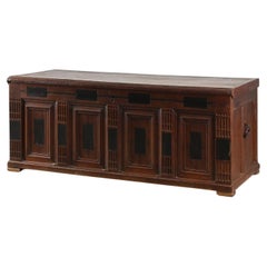 Rara (tardo medievale) cassapanca tedesca in ferro battuto del XVI secolo, o Stollentruhe