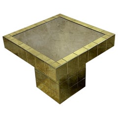 Tavolino da caffè Maison Charles in ottone patinato e vetro a specchio, anni '60