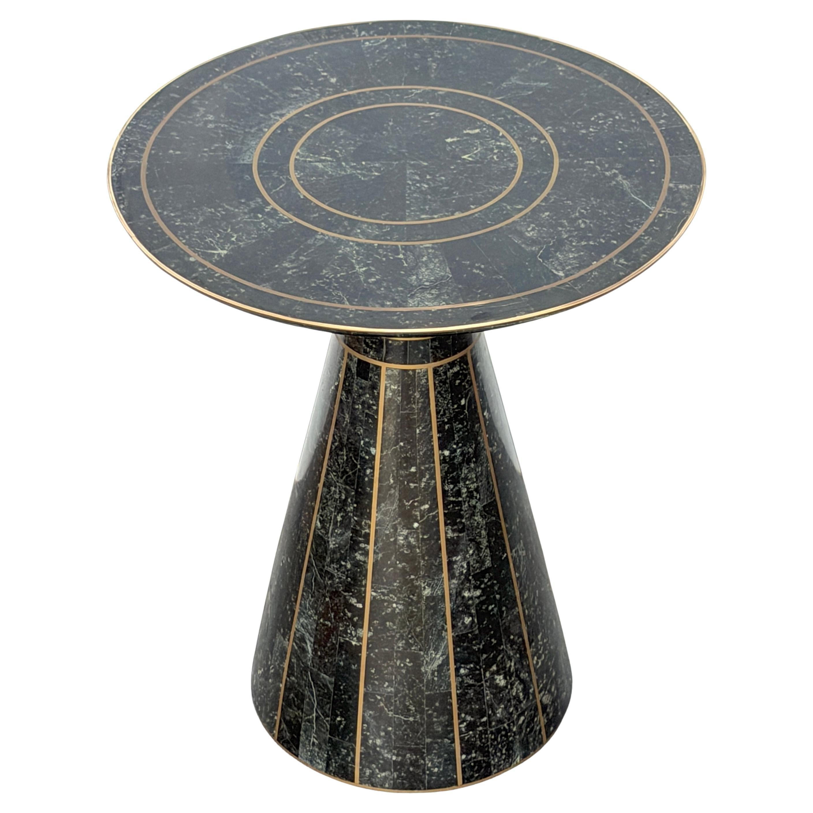 Tavolino in zigrino con dettagli in ottone patinato bronzo di Kifu Paris