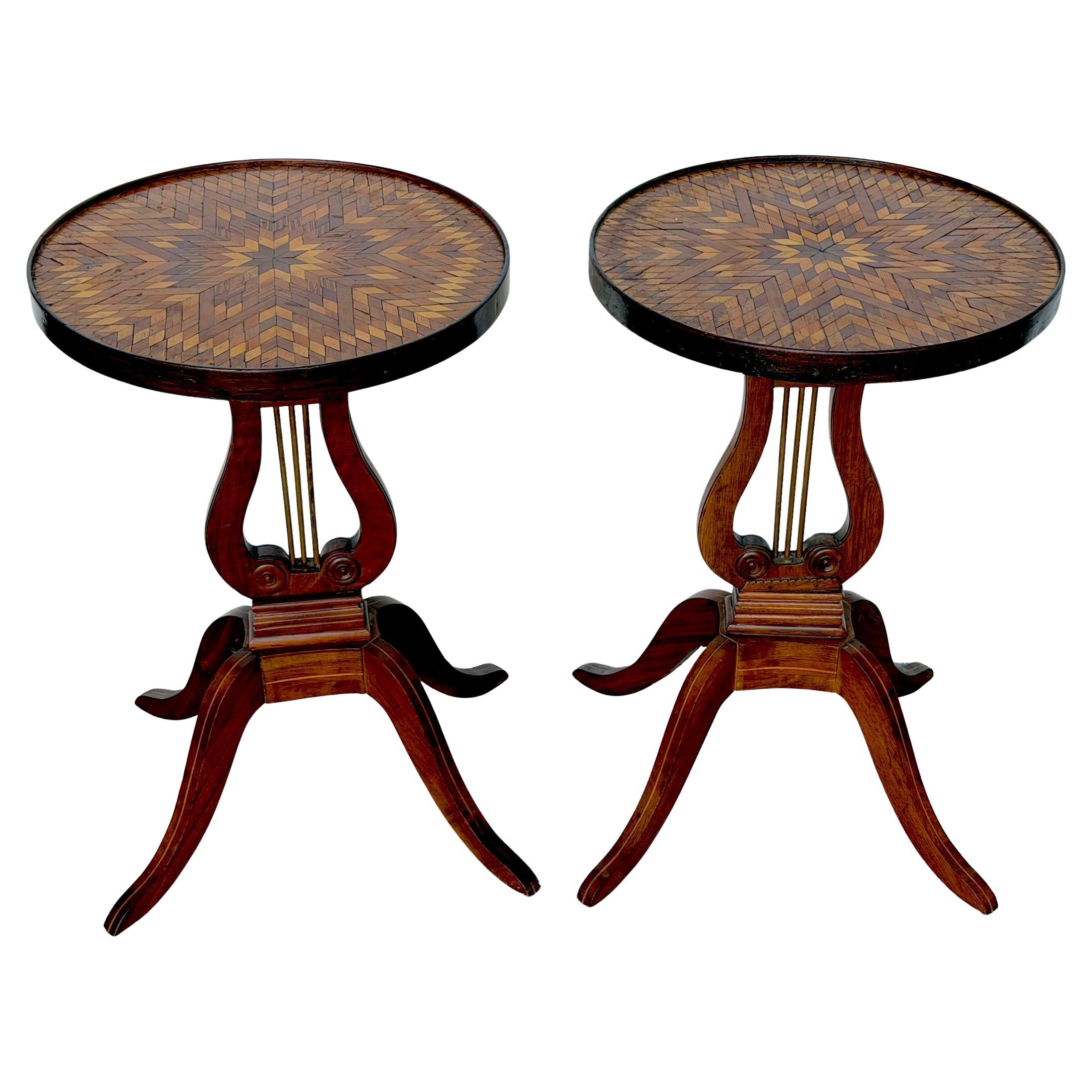 Antique French Pair Ormolu Mounted Parquetry Tables 19 ° secolo
