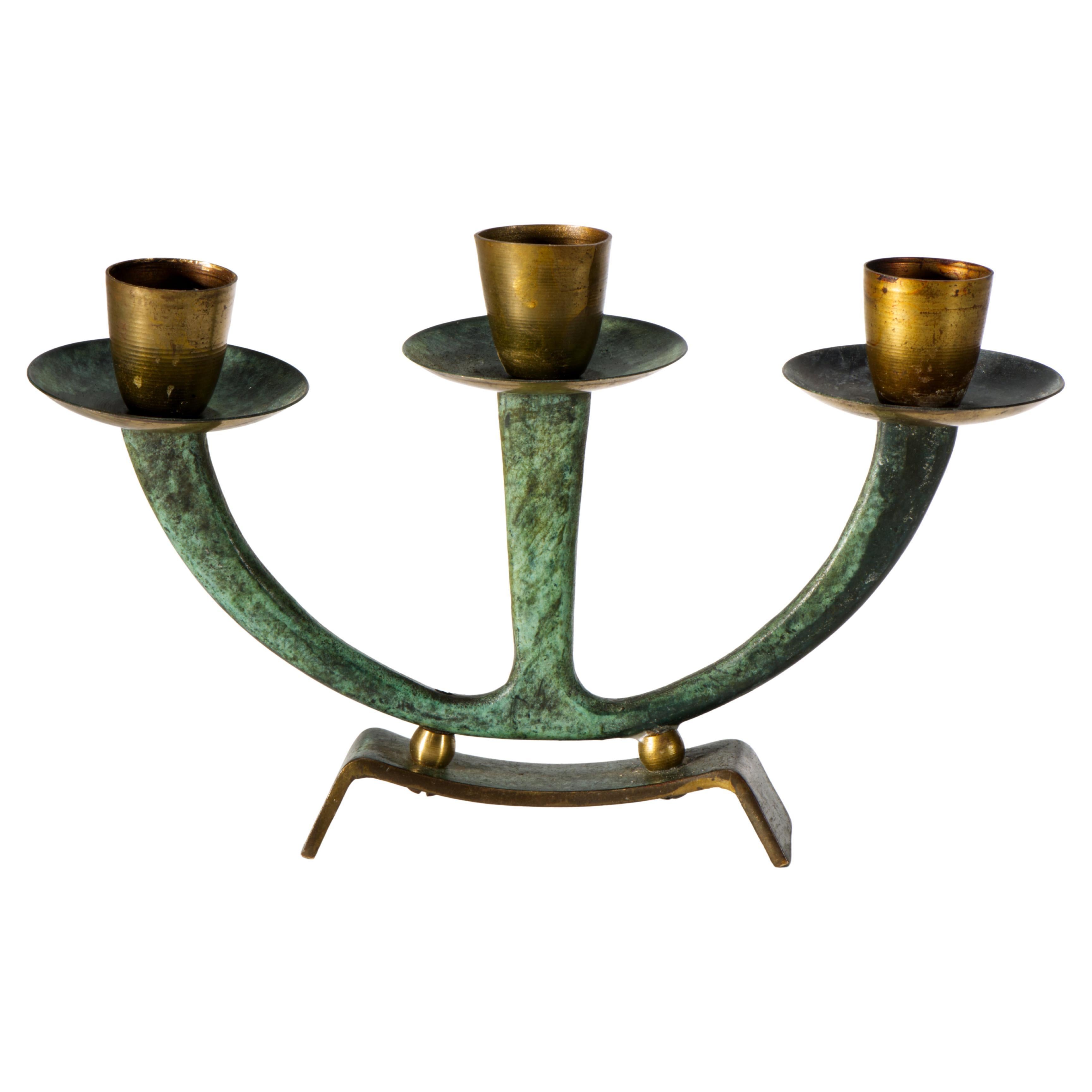 Candelabro moderno scandinavo in bronzo verdastro, anni '40-'50