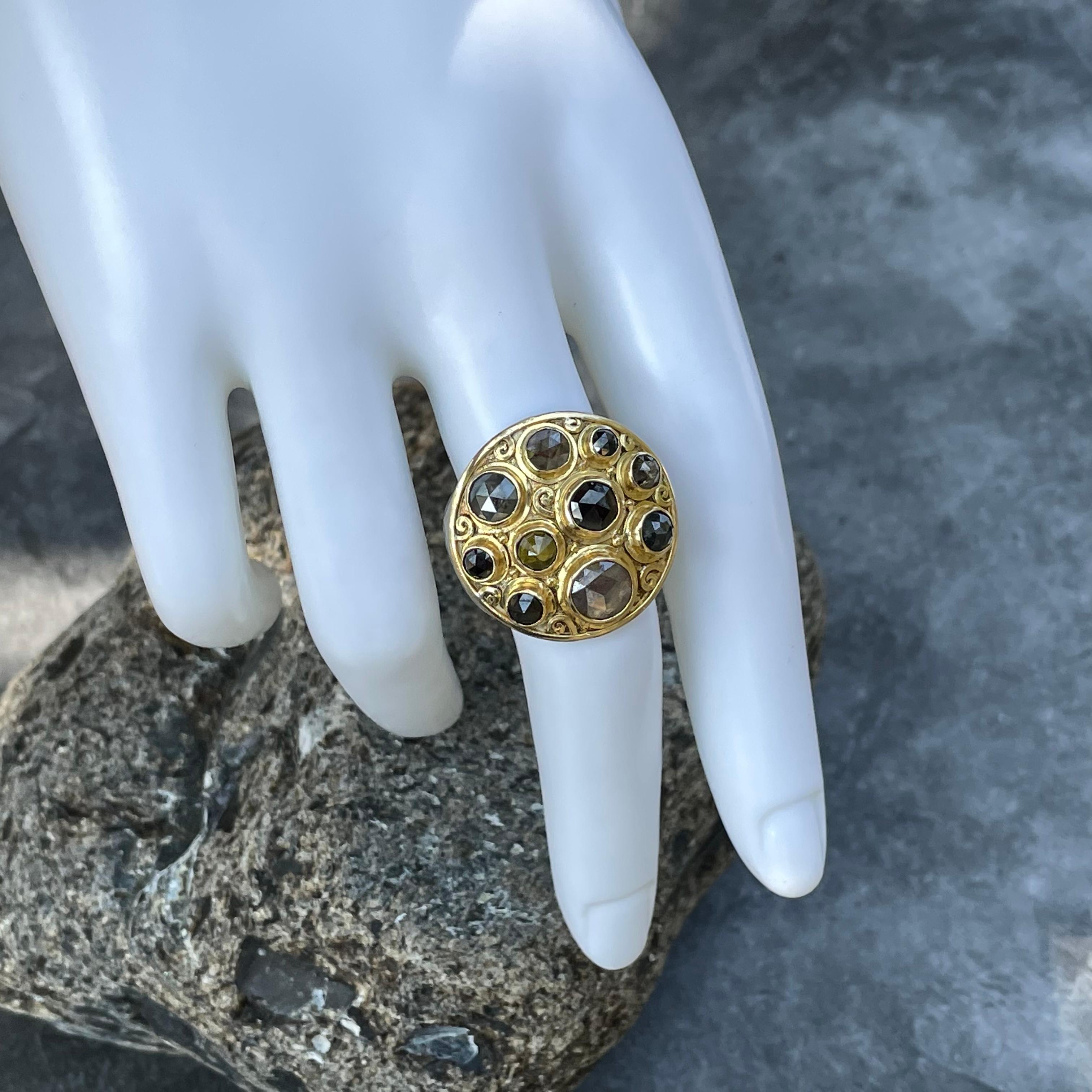 Steven Battelle Anello con diamanti grezzi taglio rosa multipli in oro e argento 18 carati