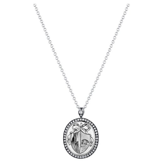 Anello con sigillo in oro bianco 18 carati, diamanti e calcografia