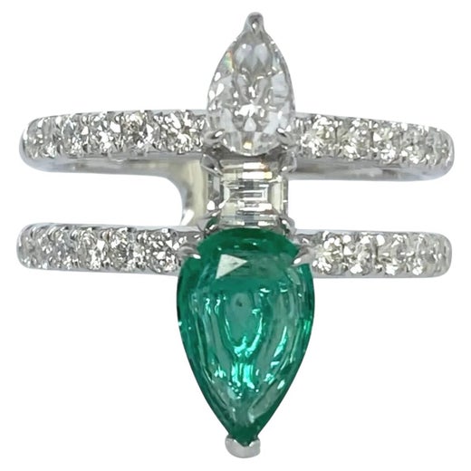 Anello moderno con diamante Baguette affusolato in oro bianco 18 carati