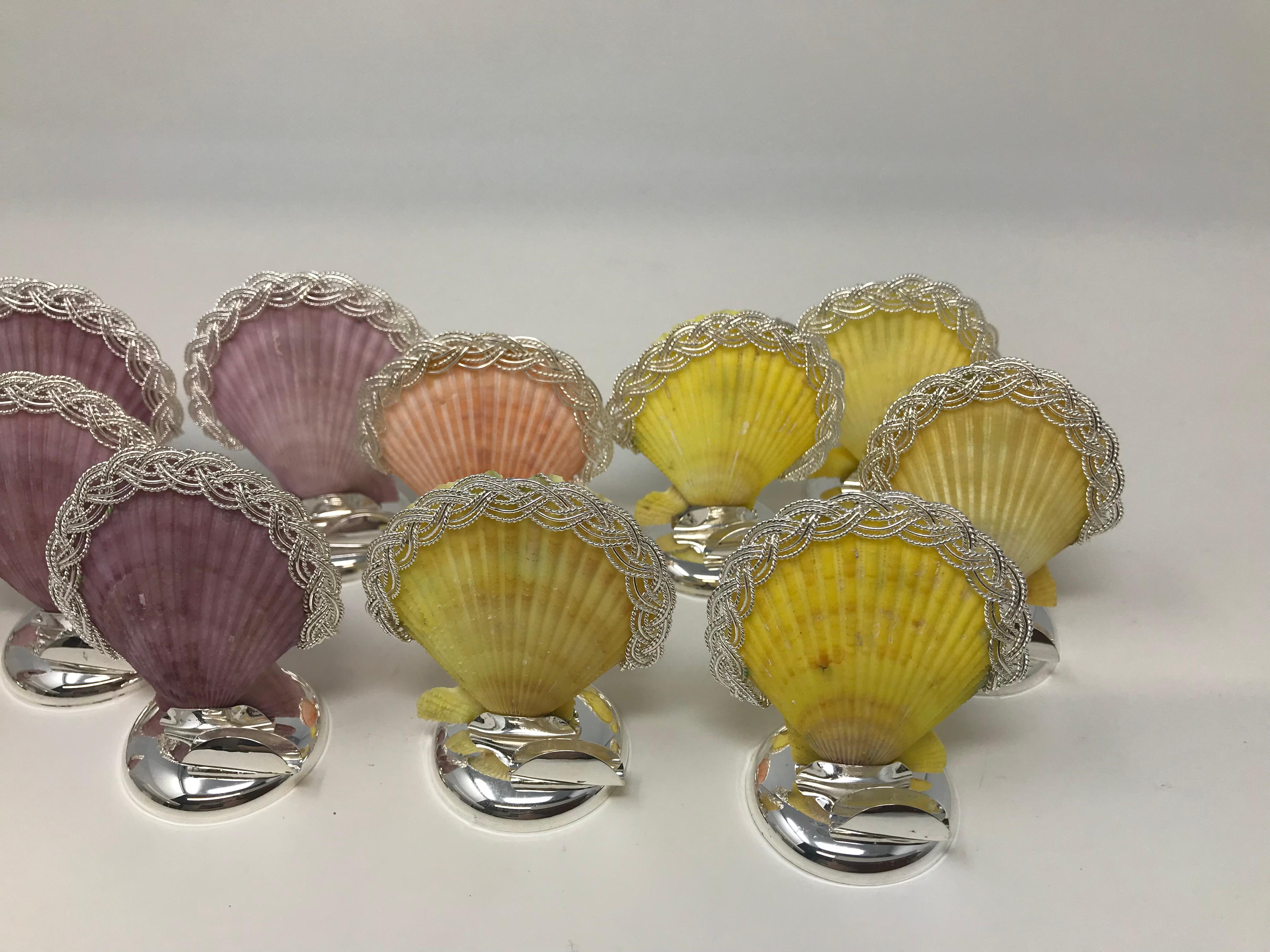 Set di 12 portacarte in argento e conchiglie