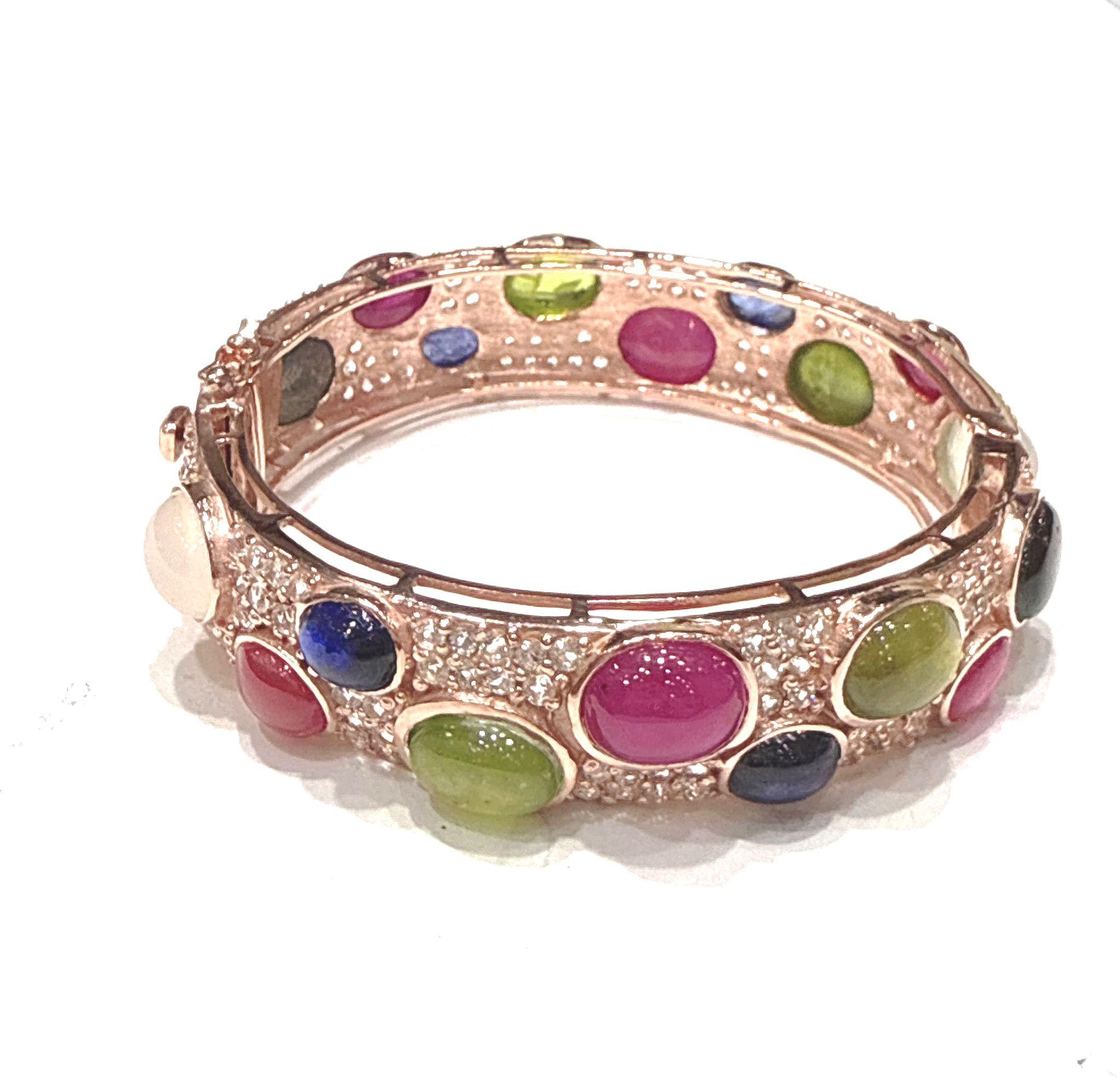 Bangle in oro rosa 18k con zaffiro multicolore e diamanti