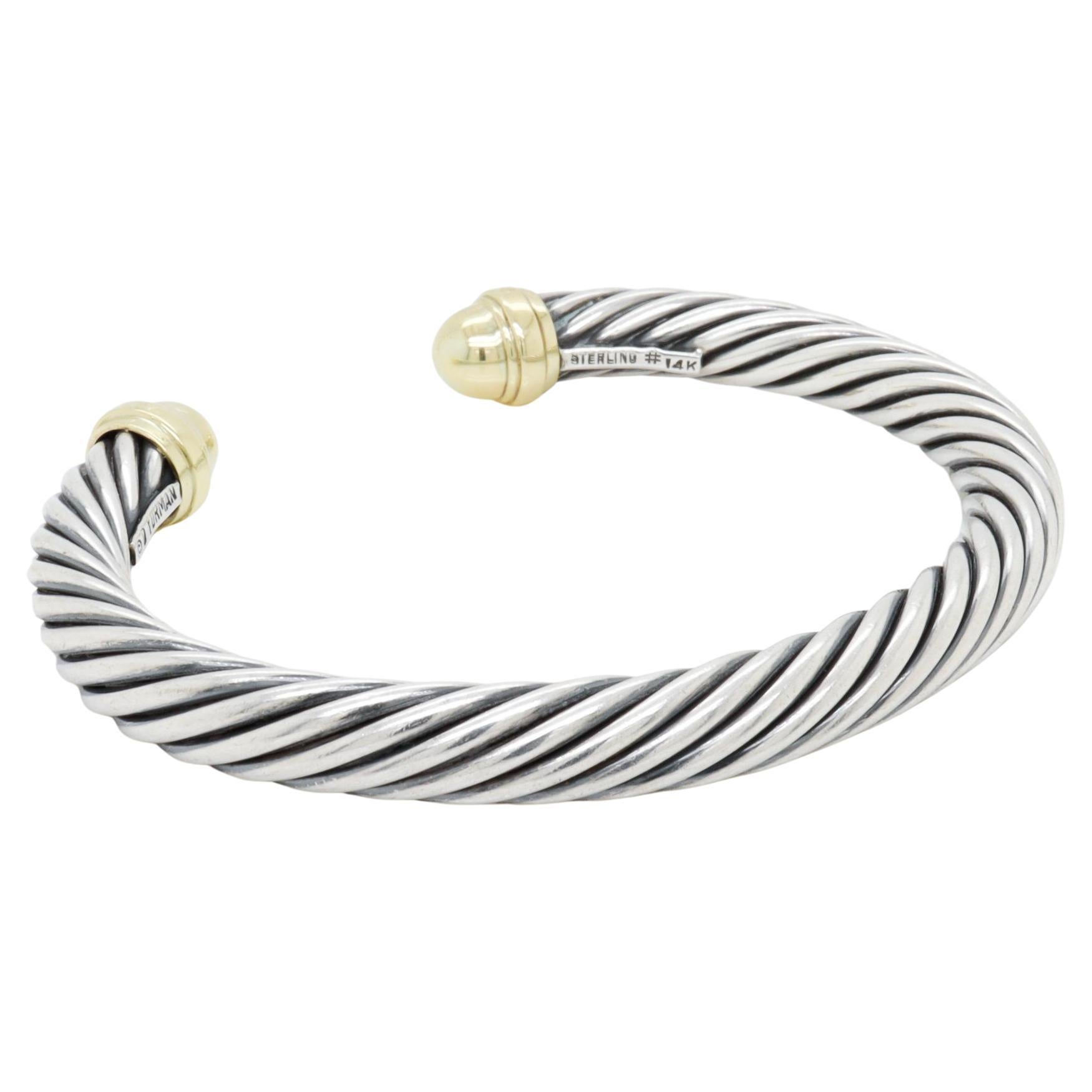 David Yurman - Bracciale a cavo classico con fibbia d'oro da 7 mm in argento sterling e oro 14K