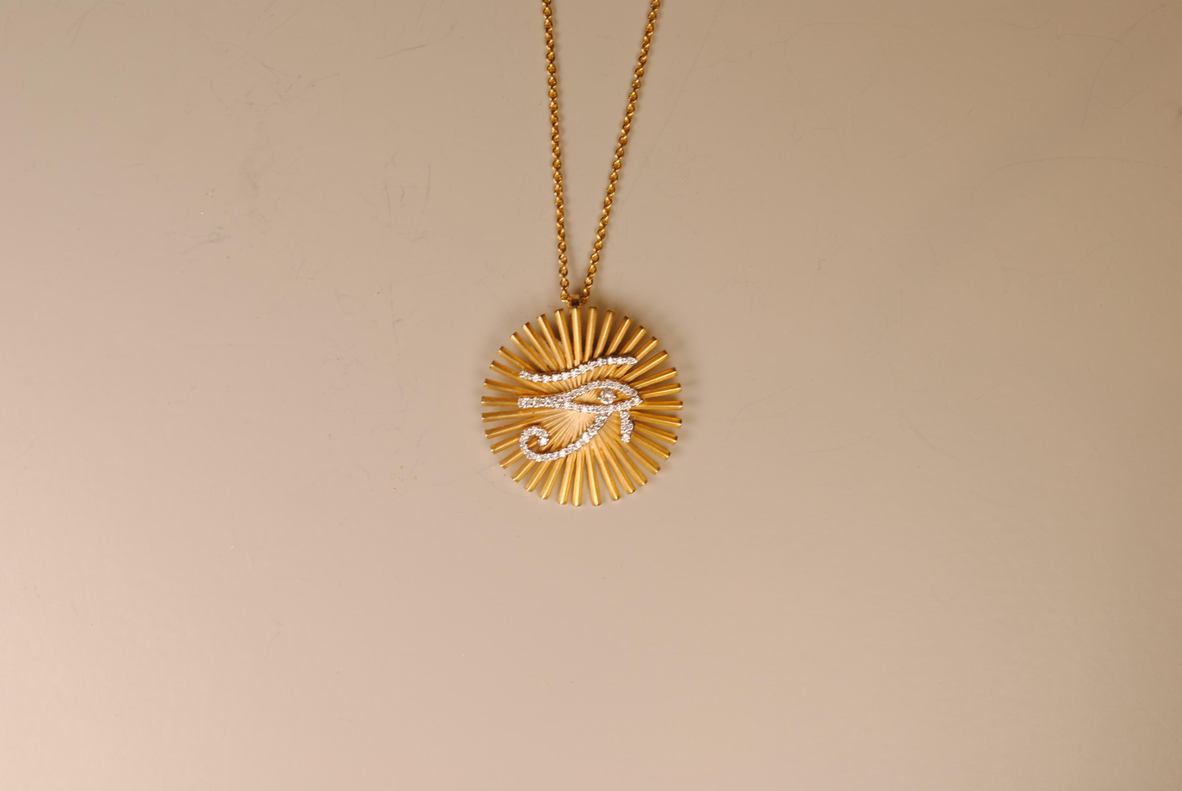 Collana con pendente a forma di occhio in oro giallo 18kt con 18 diamanti incastonati da 0,40 carati.