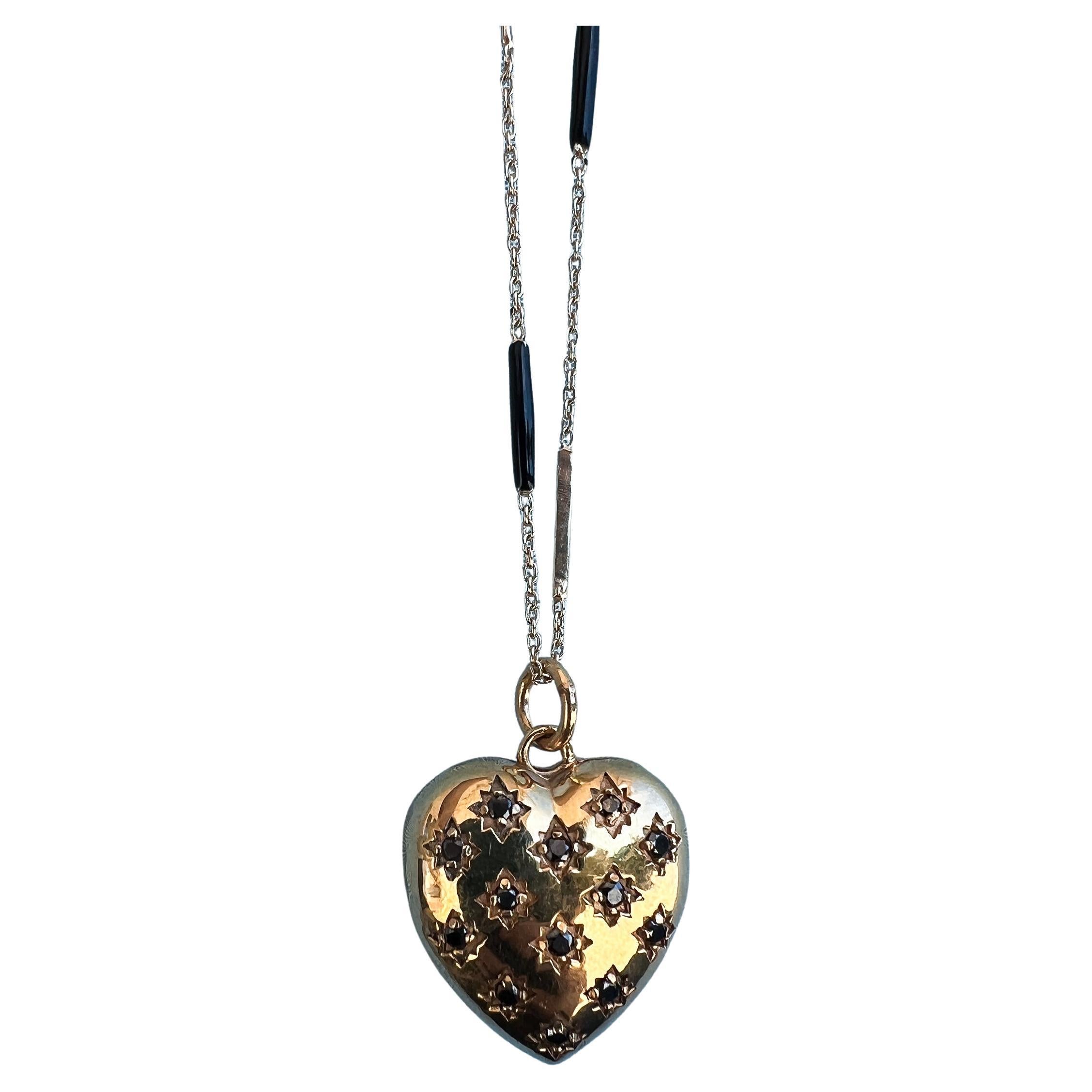 Articoli simili a Collana a cuore con diamante nero Smalto stile vittoriano