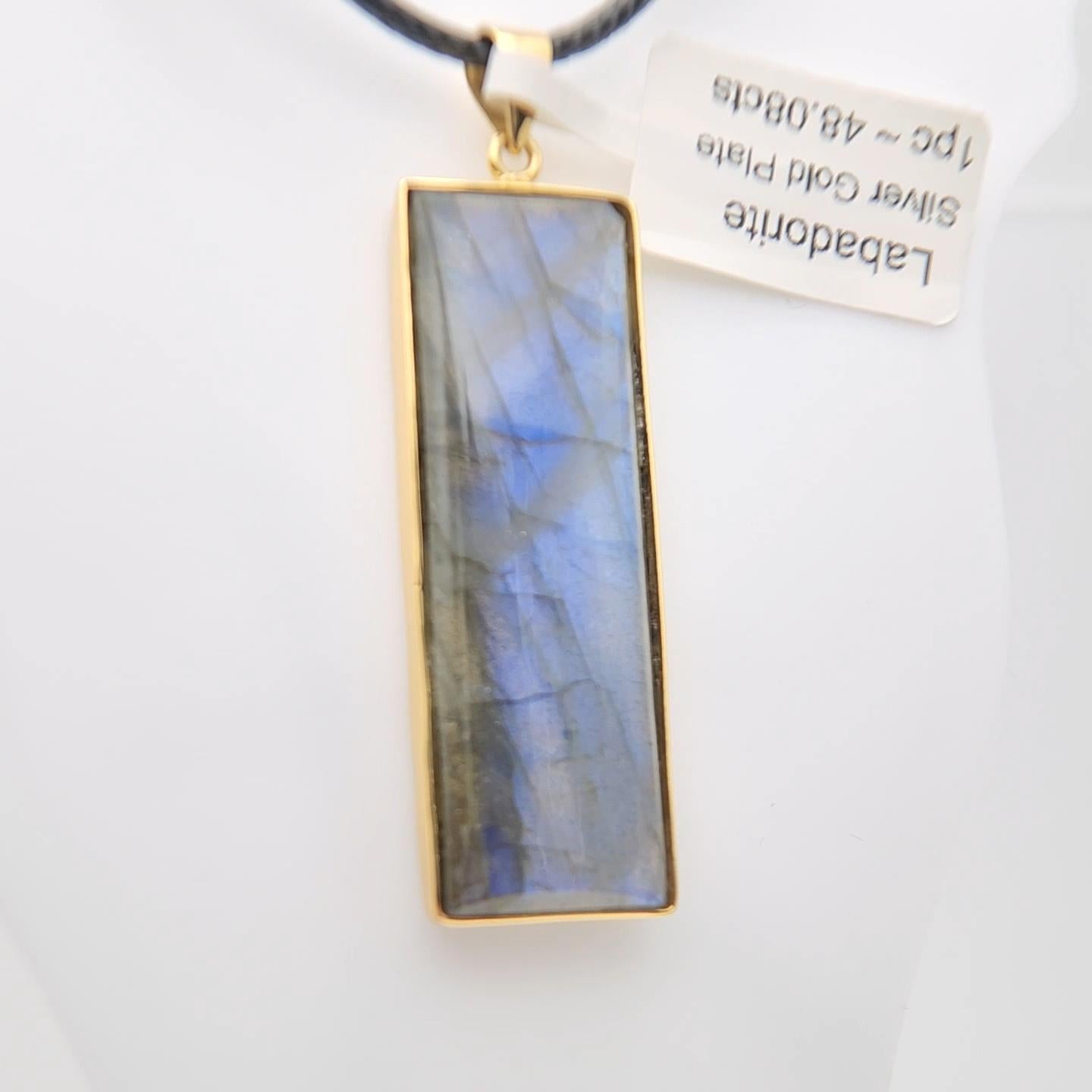 Mostra tuttoCiondolo con pietra di labradorite naturale in argento 925 placcato in oro giallo
