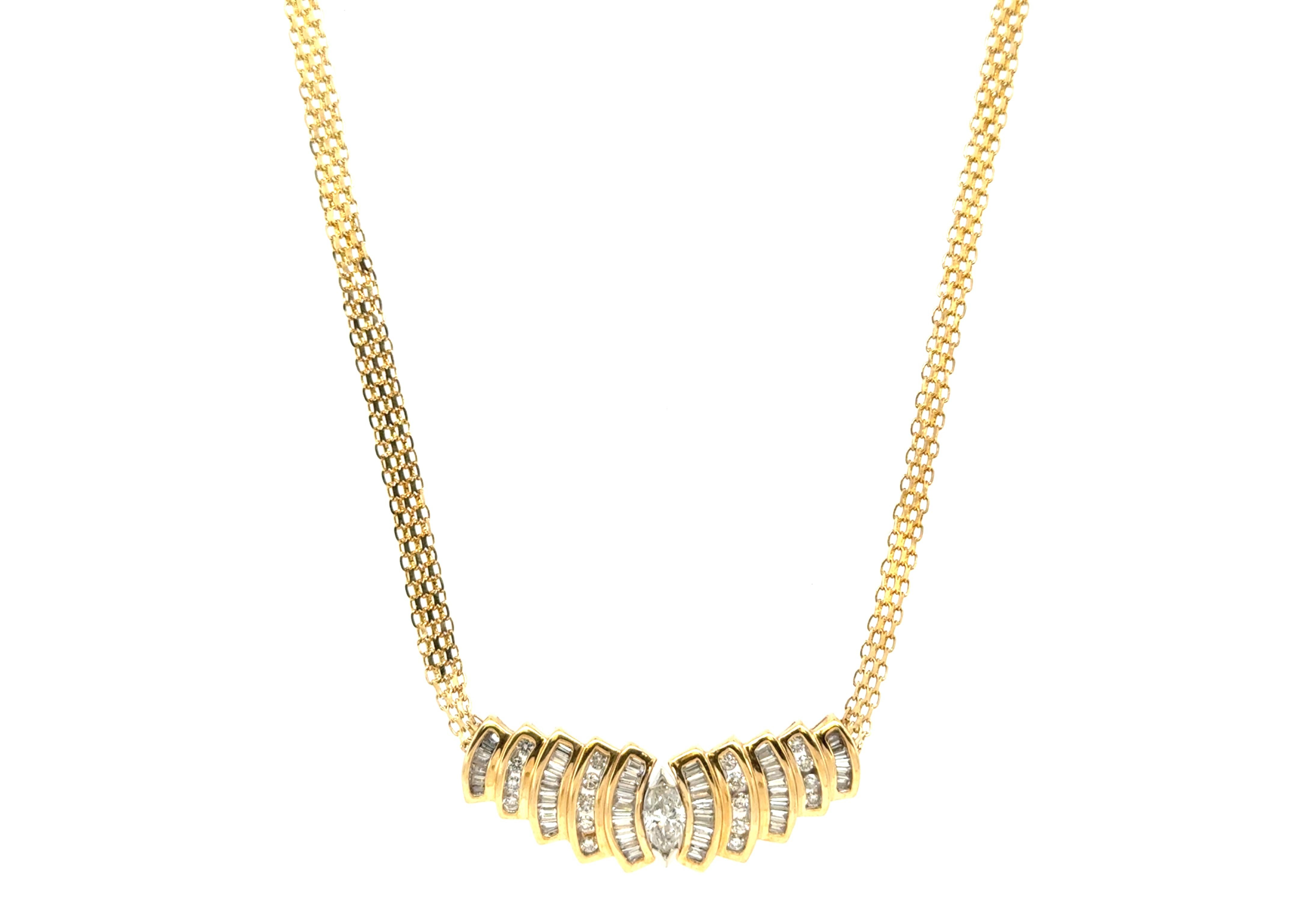 Collana con barrette di diamanti, Chevron in oro giallo 14 carati, NeckMess, NK5943Y45JJ