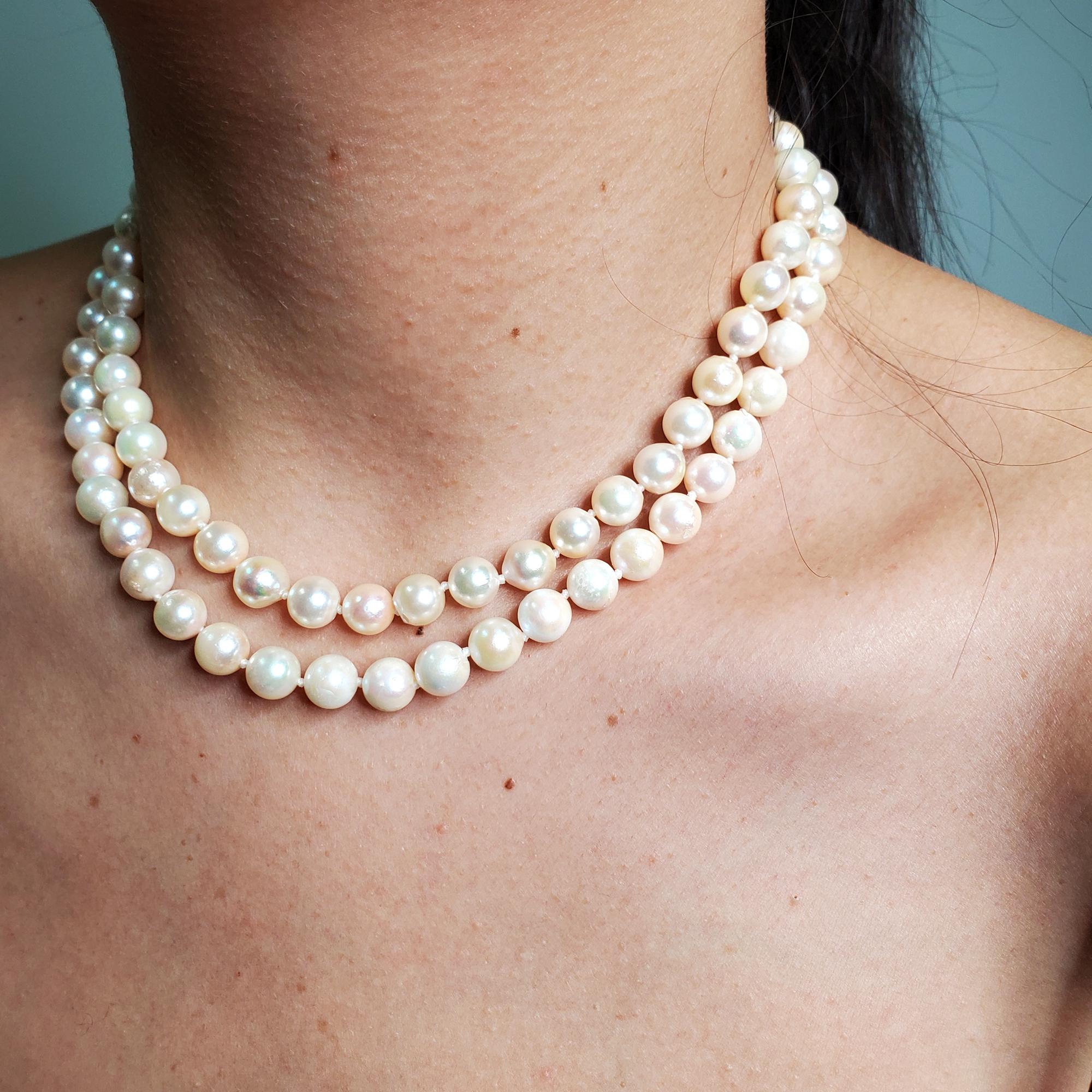 Articoli simili a Classico Collana a doppio filo con perle coltivate giapponesi da 7,5 a 8 mm in oro 14k