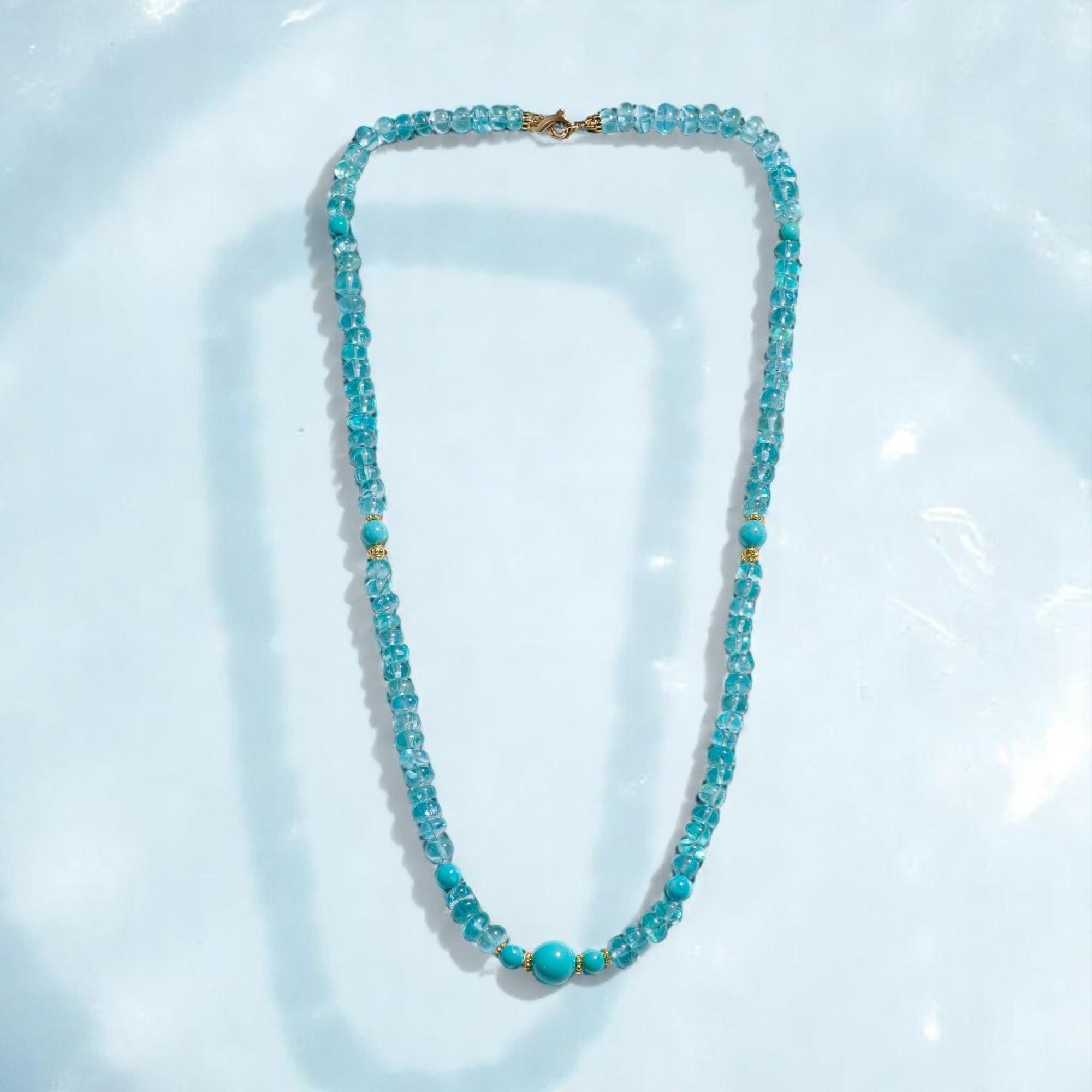 Una regale collana fatta a mano con turchesi estremamente rari e puri della Bella Addormentata, accompagnata da una perlina in oro giallo 14K fatta a mano e da una chiusura a fiocco ...