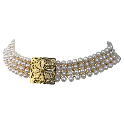 Classica collana intrecciata a mano di Marina J. Questo pezzo è realizzato con perle di semi coltivate con una lucentezza bianca e brillante, intricate in un sottile disegno simile a...