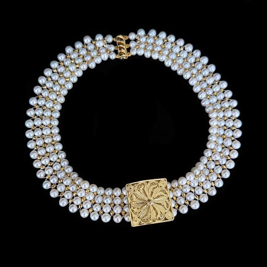Marina J. Collana regolabile con diamanti incrostati di perle d'epoca in oro 10k