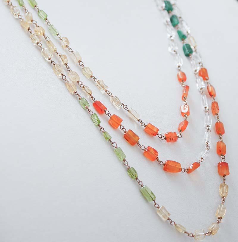 Questa collana di perline con gemme vintage trae ispirazione dalle calde tonalità del corallo sbiadito dal sole. Caratterizzato da uno squisito mix di perle di gemme autentiche nei t...