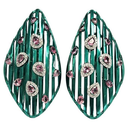 Un bellissimo orecchino con smeraldo e turchese in oro bianco 18 carati e diamanti naturali. Il peso degli smeraldi è di 6,96 carati. Gli smeraldi sono completamente naturali, senza ...
