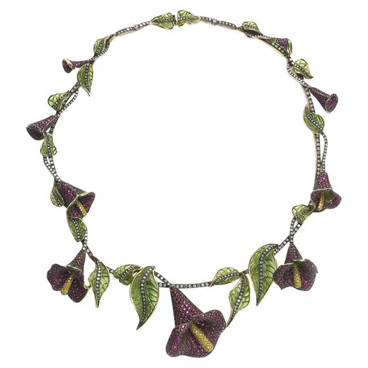 Diamante, Rubino, Zaffiro rosa, Tsavorite, Oro 18k, Oro rosa