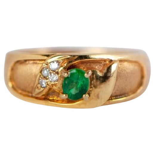 Anello con corallo rosa naturale e diamanti in oro giallo 14 carati