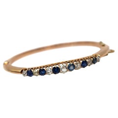 Anello antico in oro giallo 18ct, zaffiro vittoriano e diamante ovale a grappolo