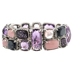Questo splendido braccialetto messicano in sterling è caratterizzato da un intarsio di pietre di onice. Misura 12 mm di larghezza e ha una circonferenza interna di 6 3/4 pollici. P...