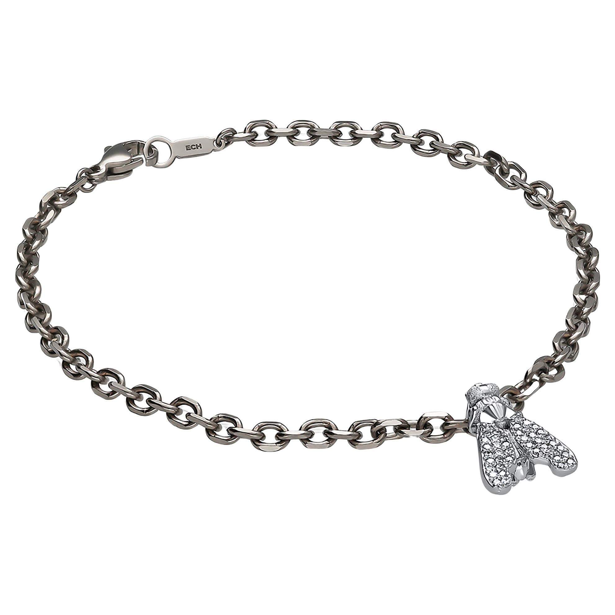 Nuno è un bracciale a maglie in argento e titanio rifinito con ossido e rutenio nero, che conferisce al metallo una tonalità profonda e ombreggiata che dà l'impressione di essere tra...