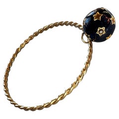 Bracciale bangle a forma di serpente in placca d'oro 14k con rubino sulla testa e diamante nero sulla testa, disegnato in stile vittoriano. Realizzato su ordinazione. Completament...